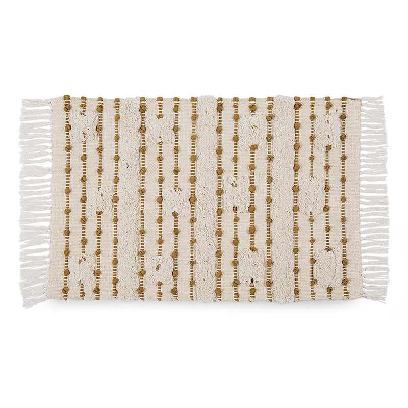 With its embossed texture and striped motif, the Naga rug mixes warm tones, being the perfect balance between design, comfort and functionality.